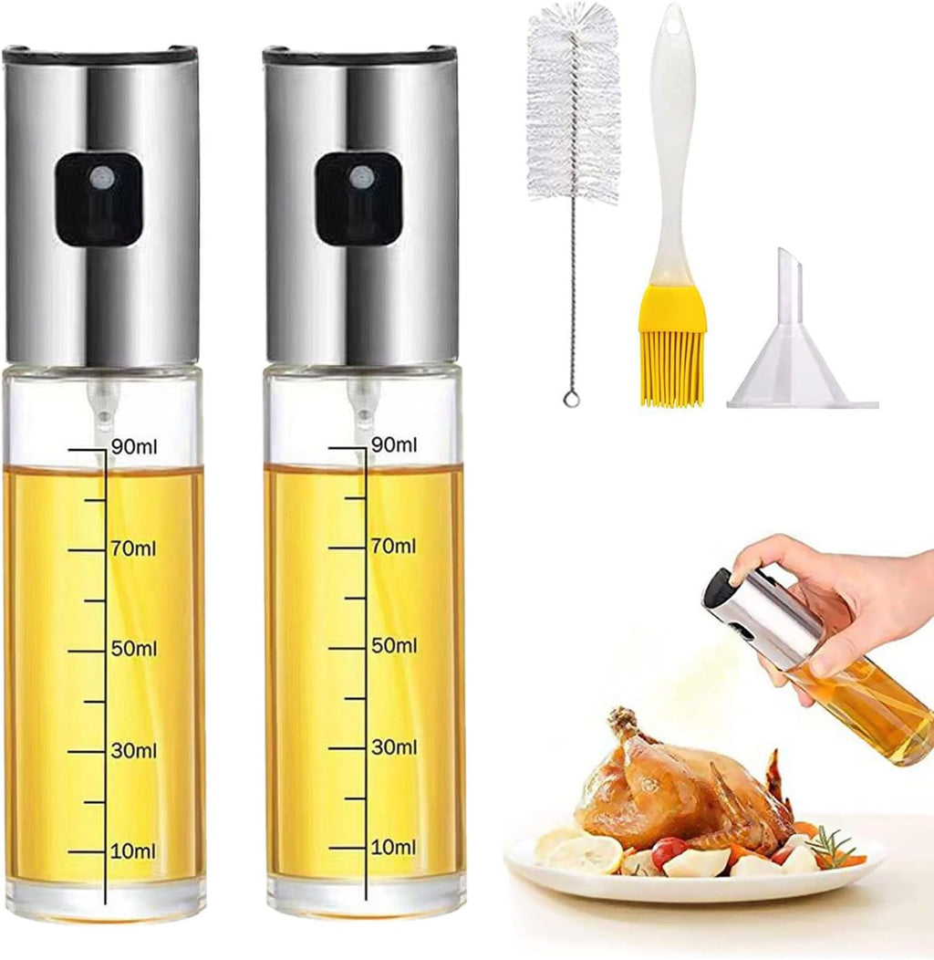 Cooking Oil Sprayer 210ml Oil Sprayer with Premium Glass & 3 Nozzles, Olive Oil Sprayer,(Black)