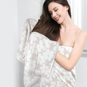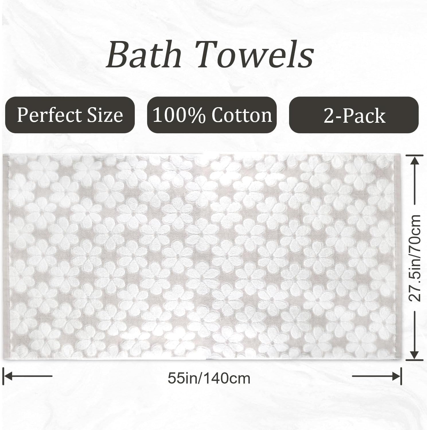 Jacquard Towels for Bathroom - Featuring a charming six-petal flower pattern with light beige brown, each bath towel is woven with care to bring a touch of nature's beauty into your bathroom oasis.