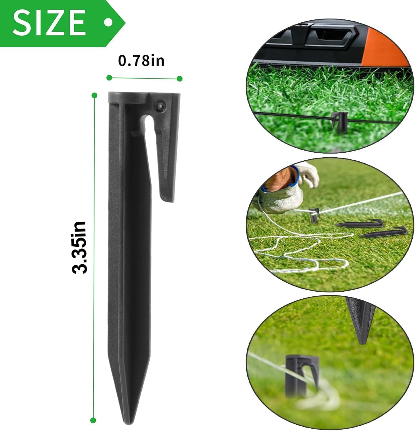 【Easy to Install】: Approx 8.5x2x/3.35 x0.78 inches. Great for invisible fences like. Black colour is clear and visible in many occasions. People will not ignore the existence of the plastic pegs for boundary wire. Each plastic peg has an anchor that will pin down anything you need with the ground
