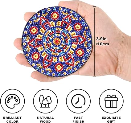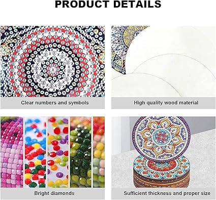 ►【Quality】These DIY diamond art coaster made of thickened wooden, not easy to wear, break or deformation, to ensure long time use. You may just use the attached tools to create glitter and shiny 5D diamond art coasters easily.