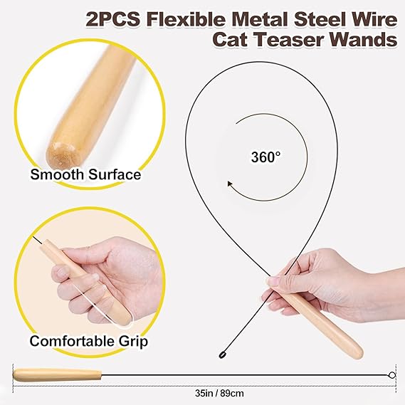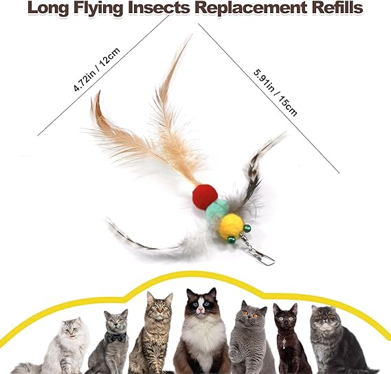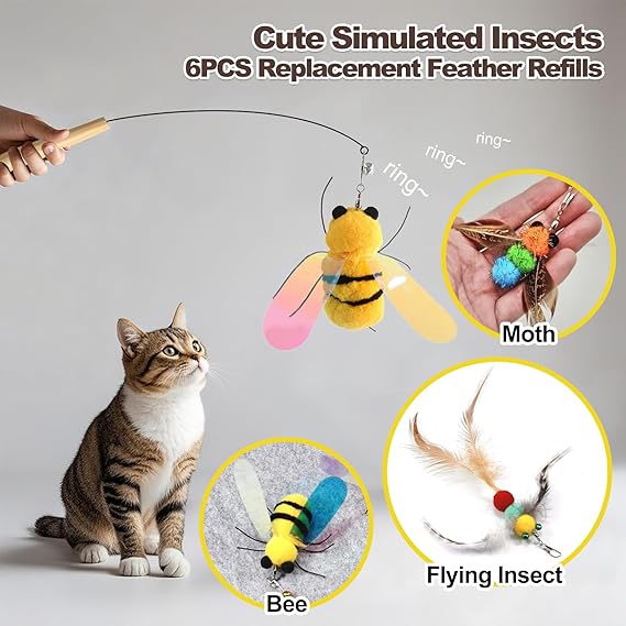 Cat Wand Toys for Indoor Cats, 8-Pack Interactive Feather Teaser Wand Toys includes 6Pcs Insects Feather Refills & 2Pcs Wood Handle Teaser Wands.