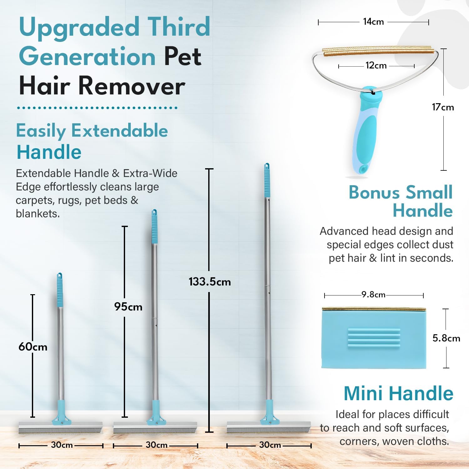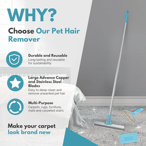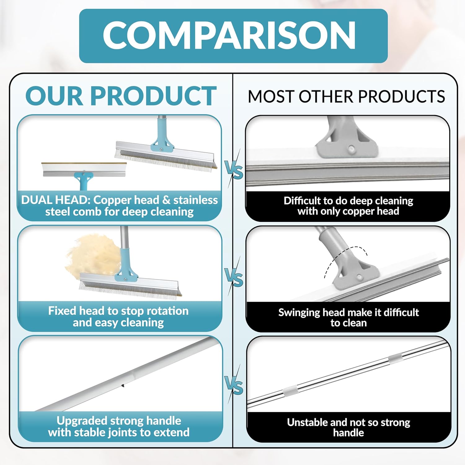 Advance Third Generation Design with Stainless steel and pure copper dual head:Say goodbye to pesky pet hair with our Pet Hair Remover for Carpet ๐พ, designed to effortlessly remove dog and cat hair from carpets, rugs, and upholstery! Its ergonomic handle and sturdy construction ensure comfort and durability during use, providing a seamless and hassle-free cleaning experience. ๐งนโจ