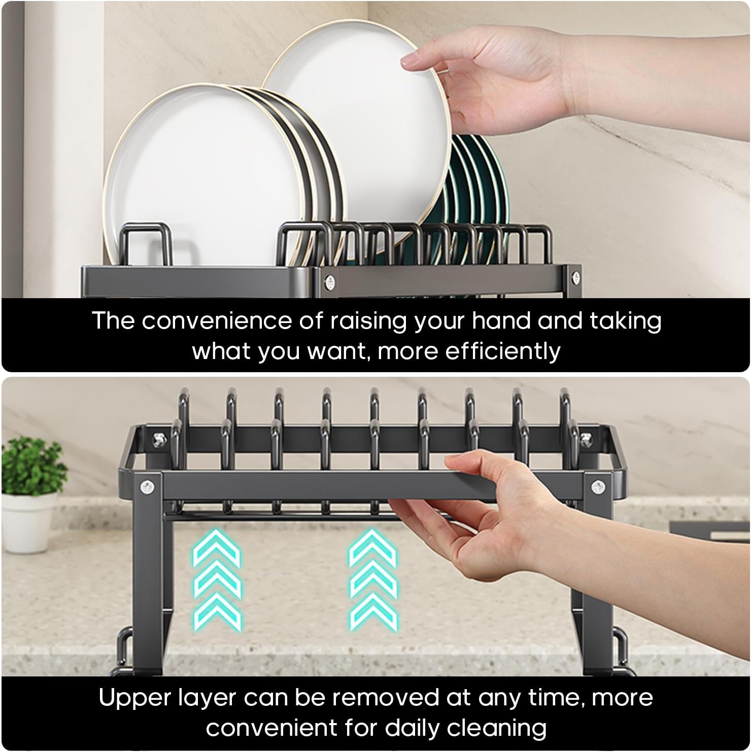 5. Quality assurance: dish drainer We pay great attention to every detail of the product, only to bring you the best use experience. This double-deck dish holder has undergone rigorous quality testing to ensure it meets high standards. Choose it to make your kitchen more stylish and efficient.