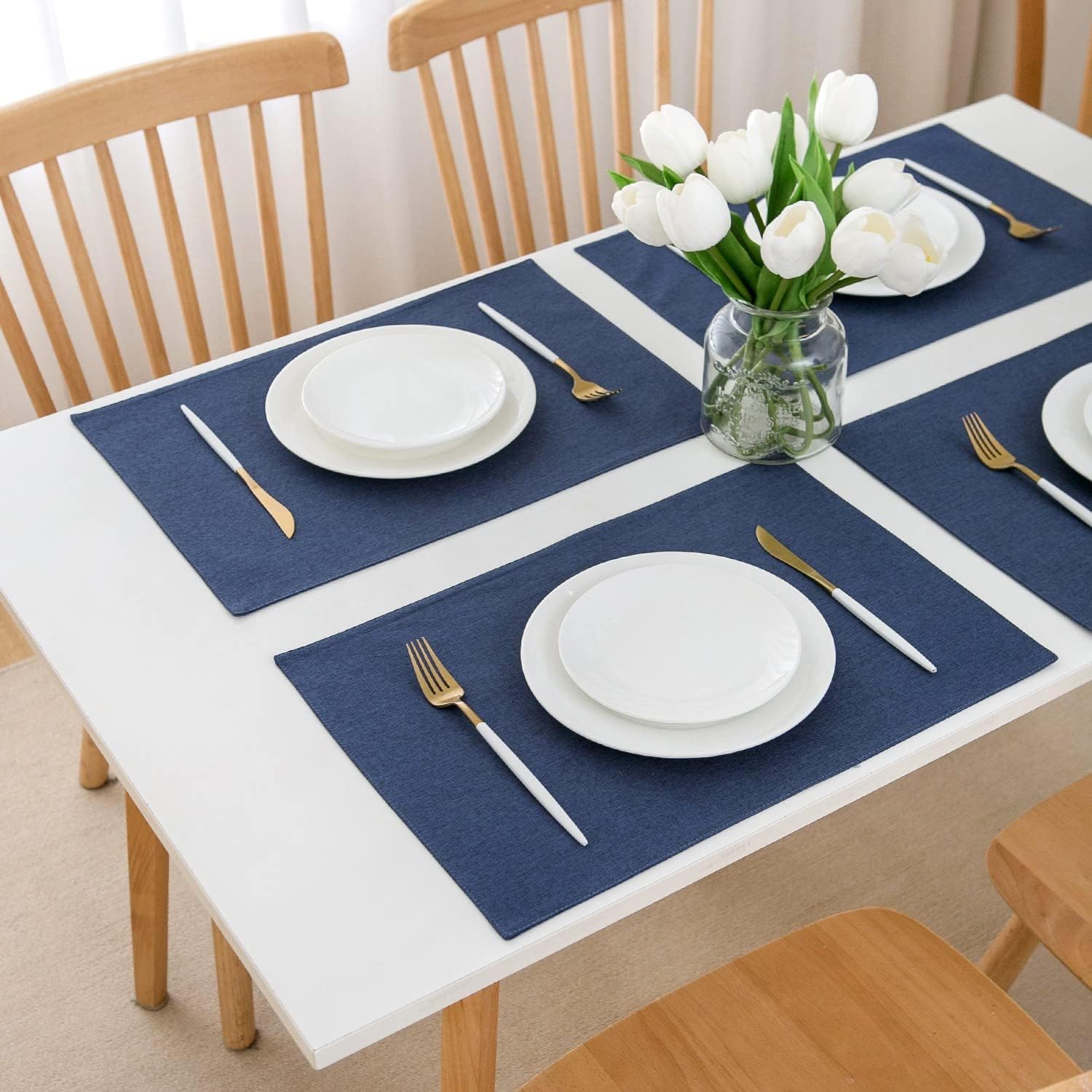 【Material】Our placemats are made of faux linen material, making them durable and reusable.