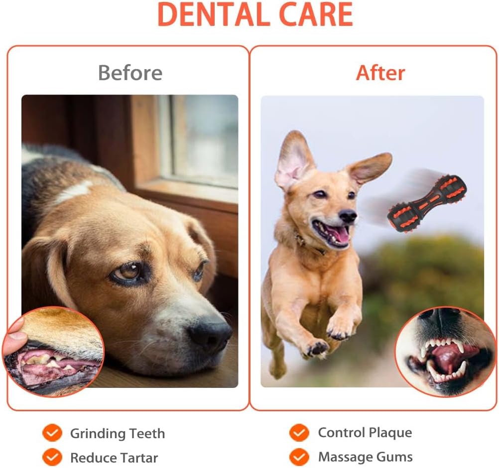 🐕 Promotes Optimal Health: The dumbbell design with its uneven surface can help brush your pet's teeth both horizontally and vertically, promoting better dental hygiene. It's also perfect for Changing bad chewing habits, relieving anxiety, reducing boredom, and even controlling barking problems. Help keep your pet healthy and happy!