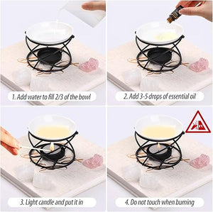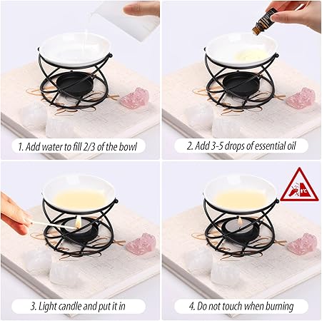 Easy to use - Put a spoon of water and 2-5 drops of the essential oil or a piece of aromatherapy wax into the warmer,and light the small candle and use the candle spoon to put the tealight candle in the burner below.