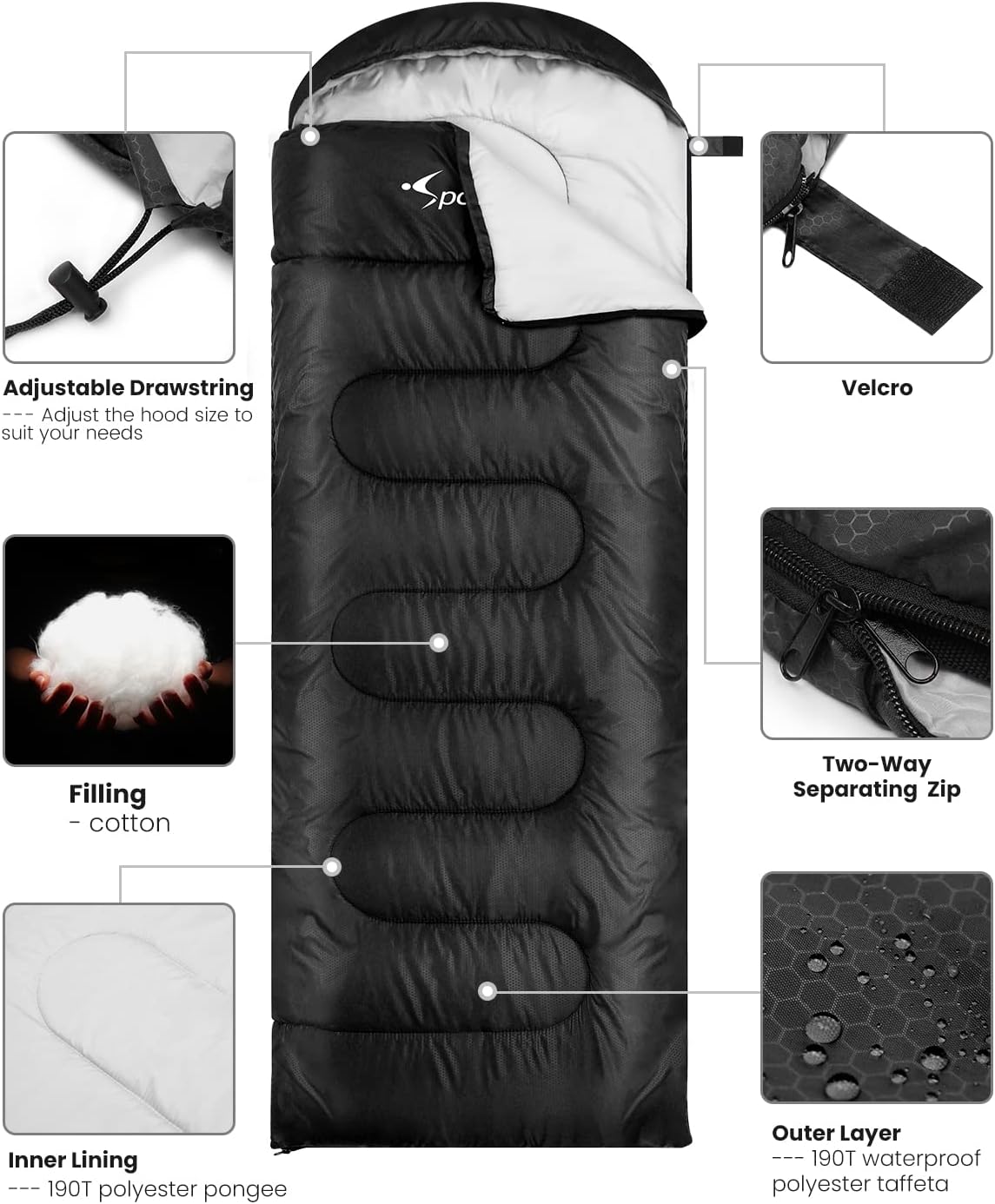 User-Friendly Design: For a more comfortable experience, we've created a two-way separatingzip at the bottom to offer your feet some freedom. The semi-circular hood is designed with an adjustable drawstring which makes it easy to keep your head warm in the coldest climes.