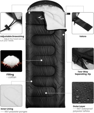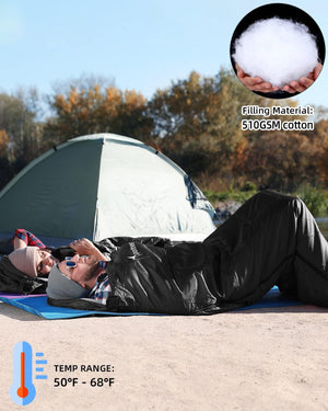 Suitable for 3 Seasons: Built from 510GSM cotton, the sleeping bag is the ideal option for camping as it can be the convenience needed for three seasons (spring, summer and fall). With a temperature range of 50F-68F, you can get the comfortable sleep you need after a day of adventurous outdoor camping, backpacking, hiking, travel.