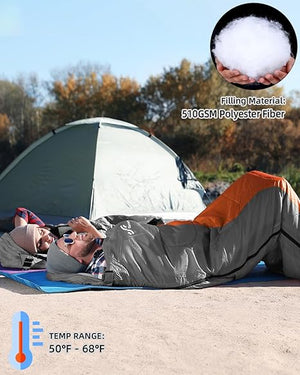 Suitable for 3 Seasons: Built from 510GSM cotton, the sleeping bag is the ideal option for camping as it can be the convenience needed for three seasons (spring, summer and fall). With a temperature range of 50F-68F, you can get the comfortable sleep you need after a day of adventurous outdoor camping, backpacking, hiking, travel.