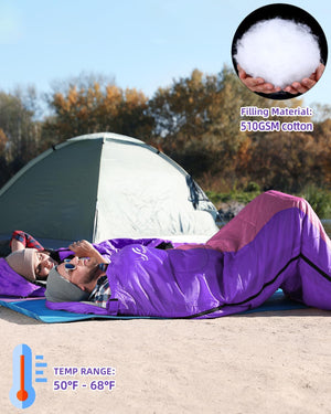 Suitable for 3 Seasons: Built from 510GSM cotton, the sleeping bag is the ideal option for camping as it can be the convenience needed for three seasons (spring, summer and fall). With a temperature range of 50F-68F, you can get the comfortable sleep you need after a day of adventurous outdoor camping, backpacking, hiking, travel.