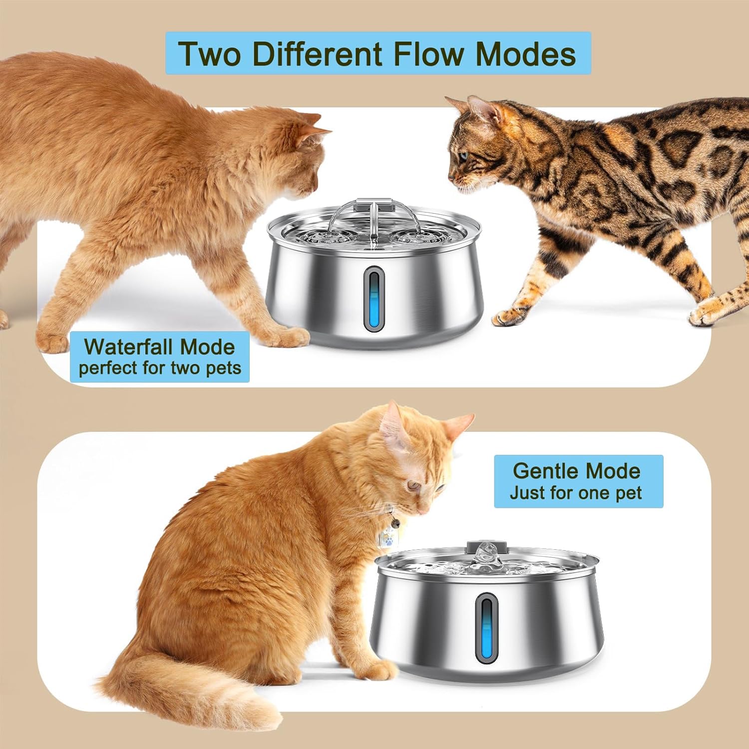 đ˝ăTwo Water Flow Modes-Attracts Catsă This water fountain for cats inside has two water flow modes: faucet mode and fountain mode. They can meet the different needs of pets. The live spring water flowing from under the faucet better attracts cats. Let your pet love to drink water.