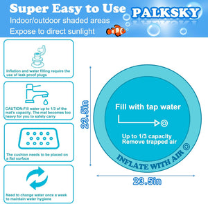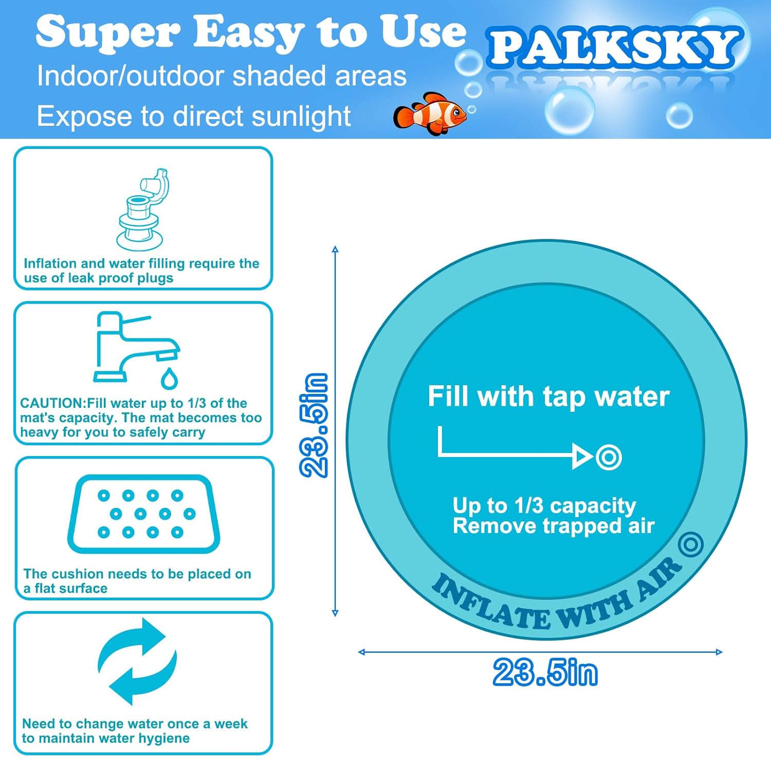 The water level after filling should not exceed 1/3 of the volume of the mat, otherwise it will not be easy to safely get the mat to the place you want to place it. Fish toys also don’t float and move well.