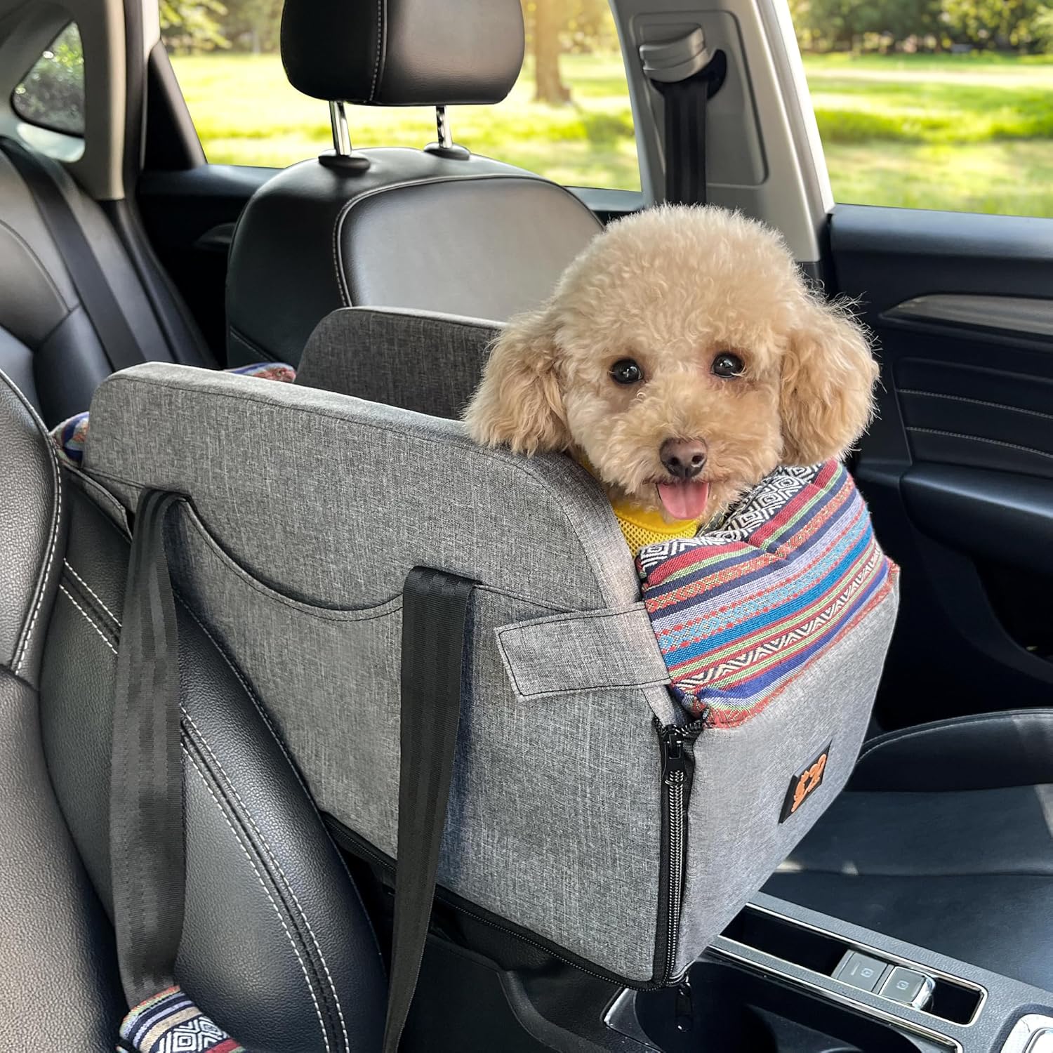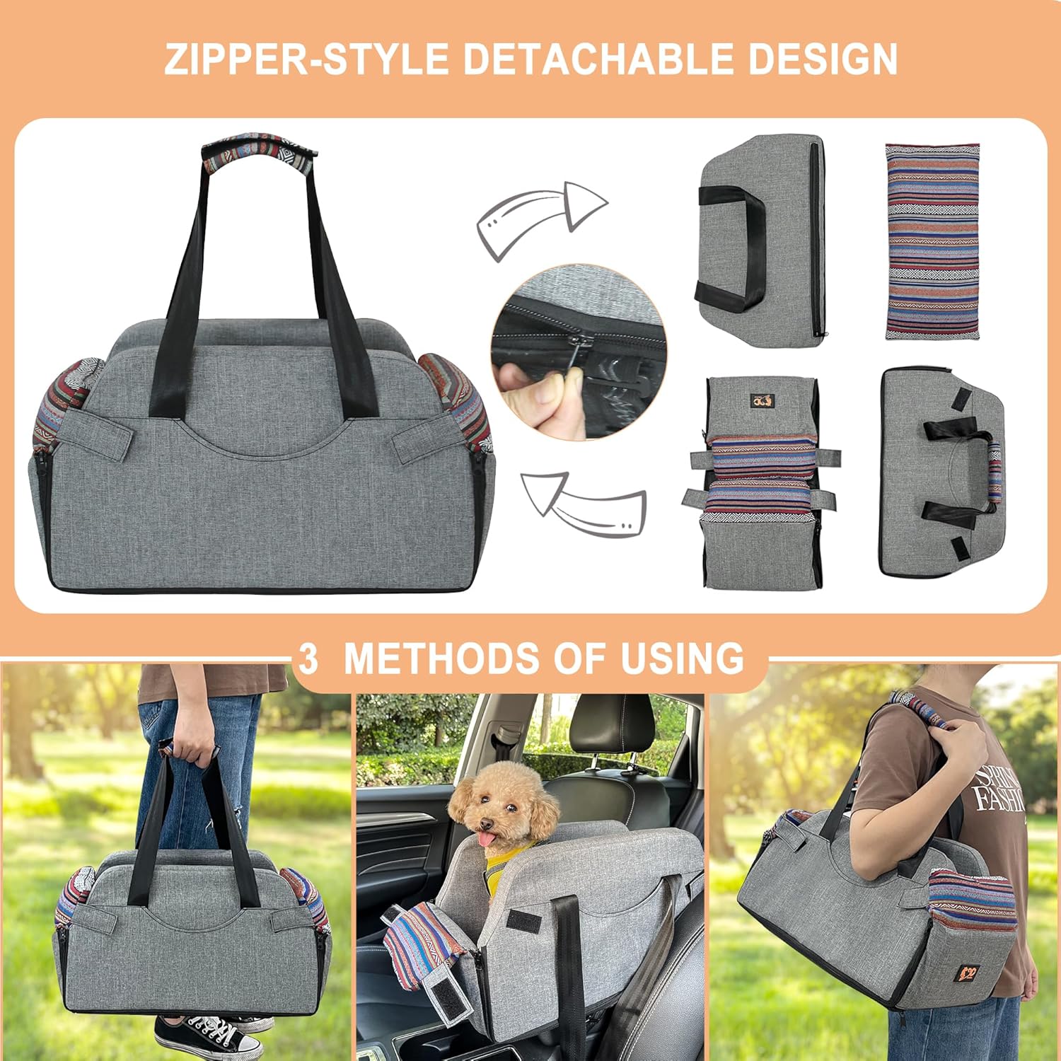 UPGRADED DOG SEAT BOOSTER: Install the dog seat on console while driving, increase the intimacy between the pet and you. Dog car booster seat designed with comfortable handle strap for easy to carry.Your pet can enjoy the scenery and have enough security. GeerDuo dog car seat not only a dog seat booster, but also a dog carrier
