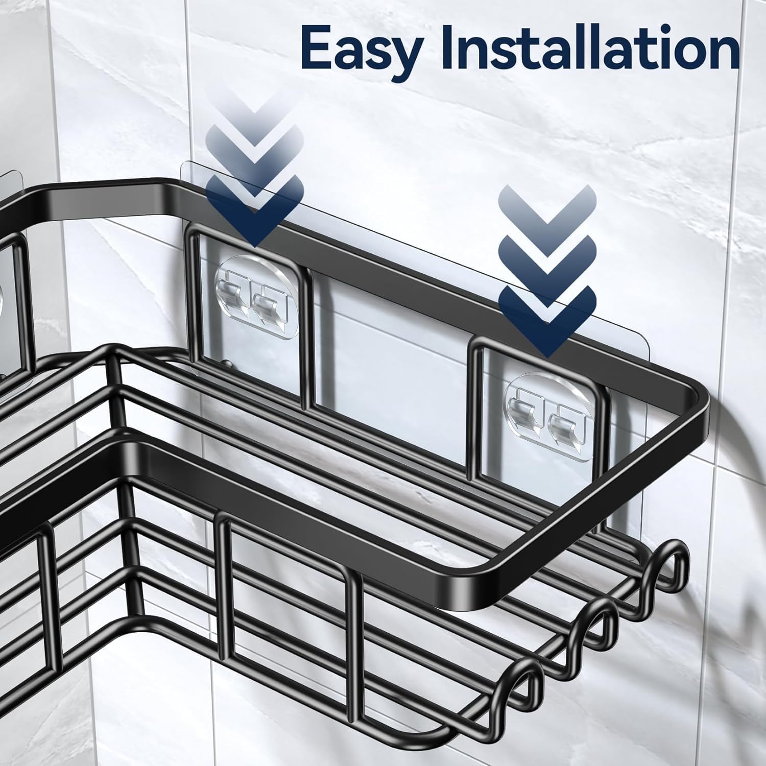 Rust-Proof and Thicker Solid Frame: The corner shower caddy frame is made of 304 stainless steel, coated with rustproof paint, and thickened wire than those shower caddies on the market. This adhesive shower caddy remains rust-free and maintains a high sheen for years
