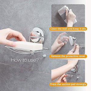 HIGH QUALITY MATERIAL - suction cup made of rubber and ABS plastic with chrome finish, soap holder made of 304 stainless steel - RUSTPROOF forever in daily use.