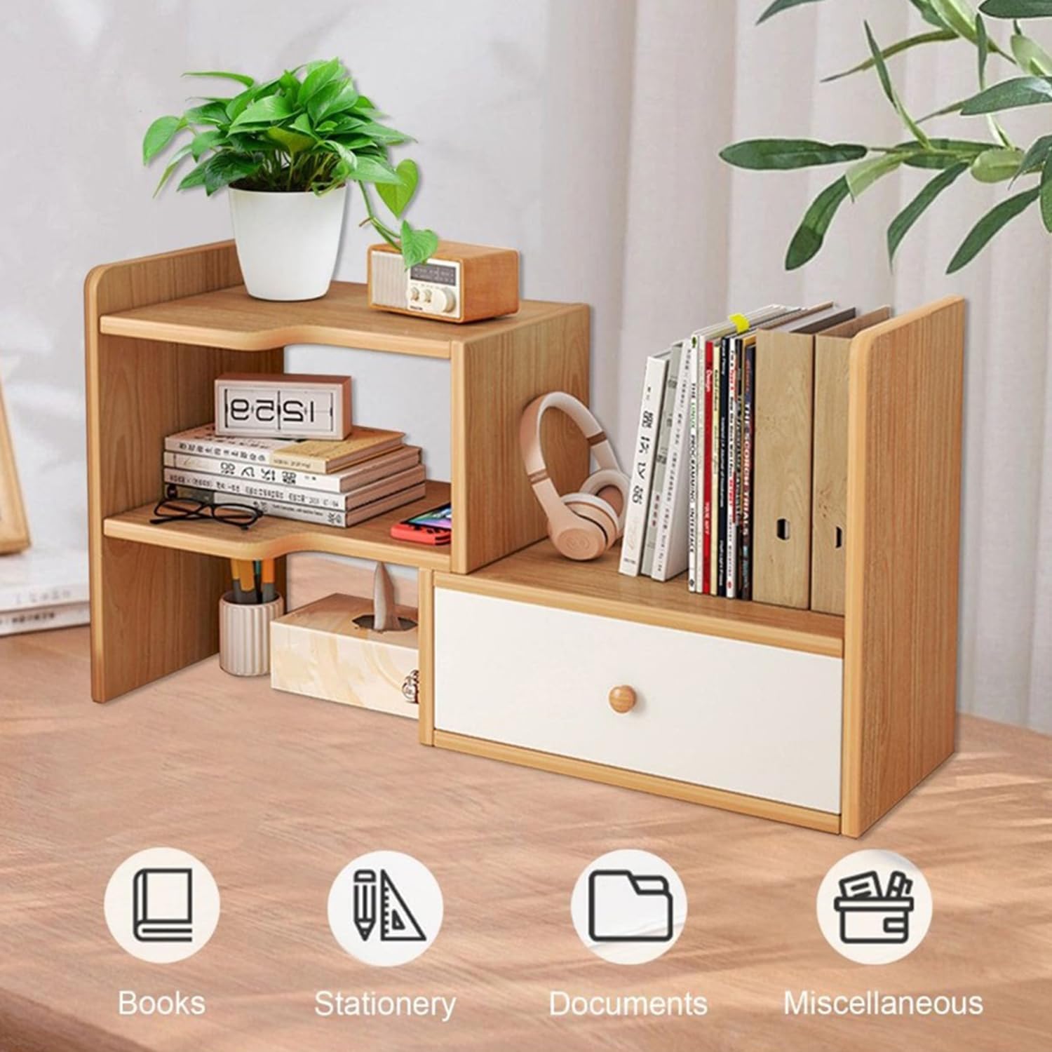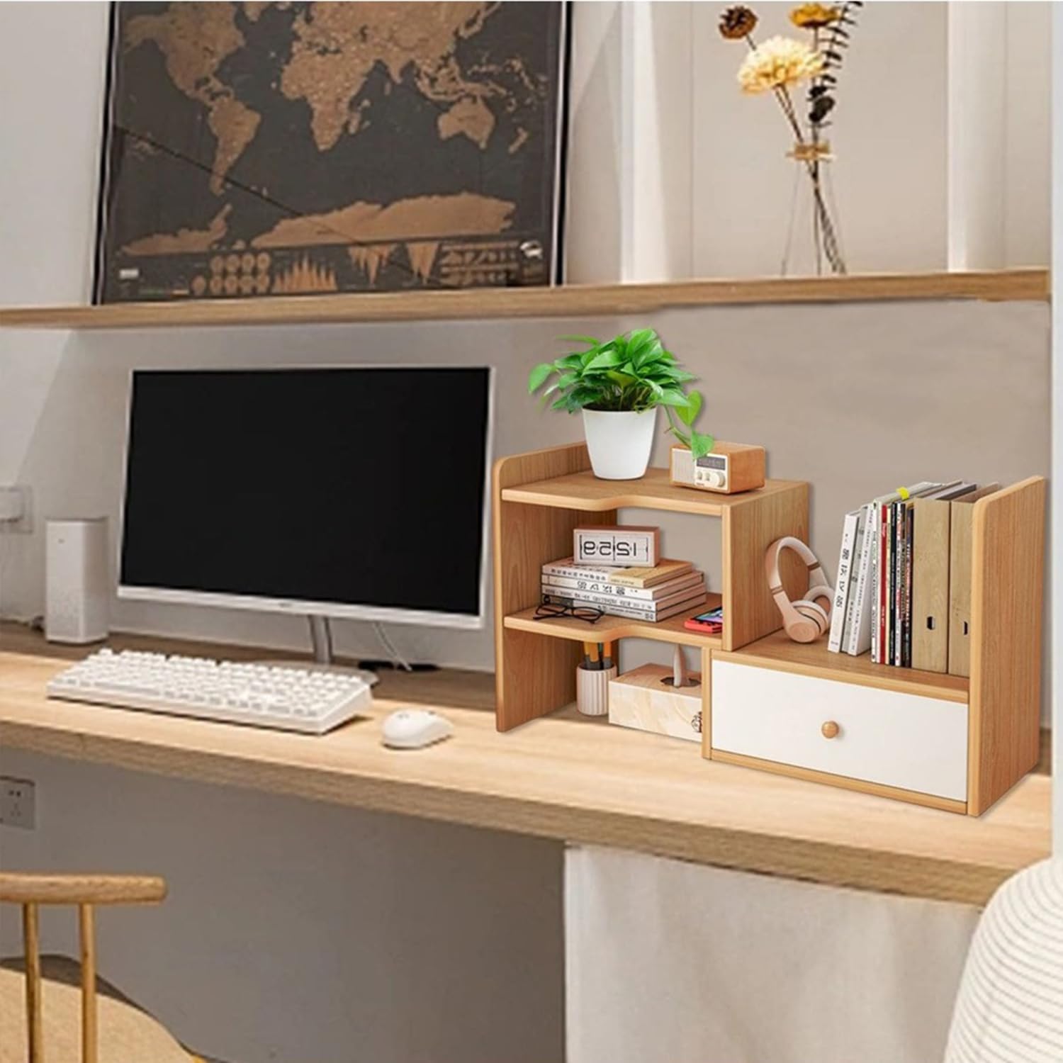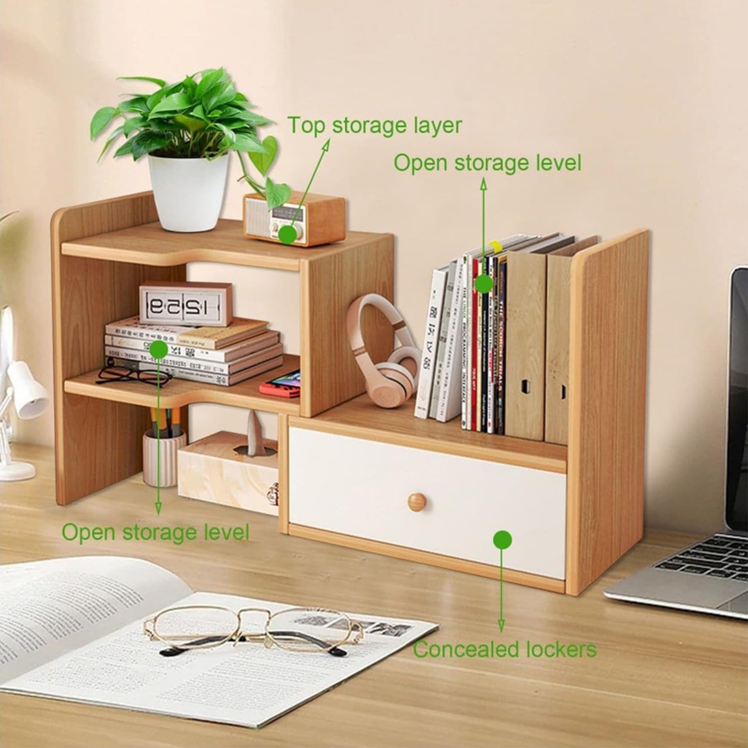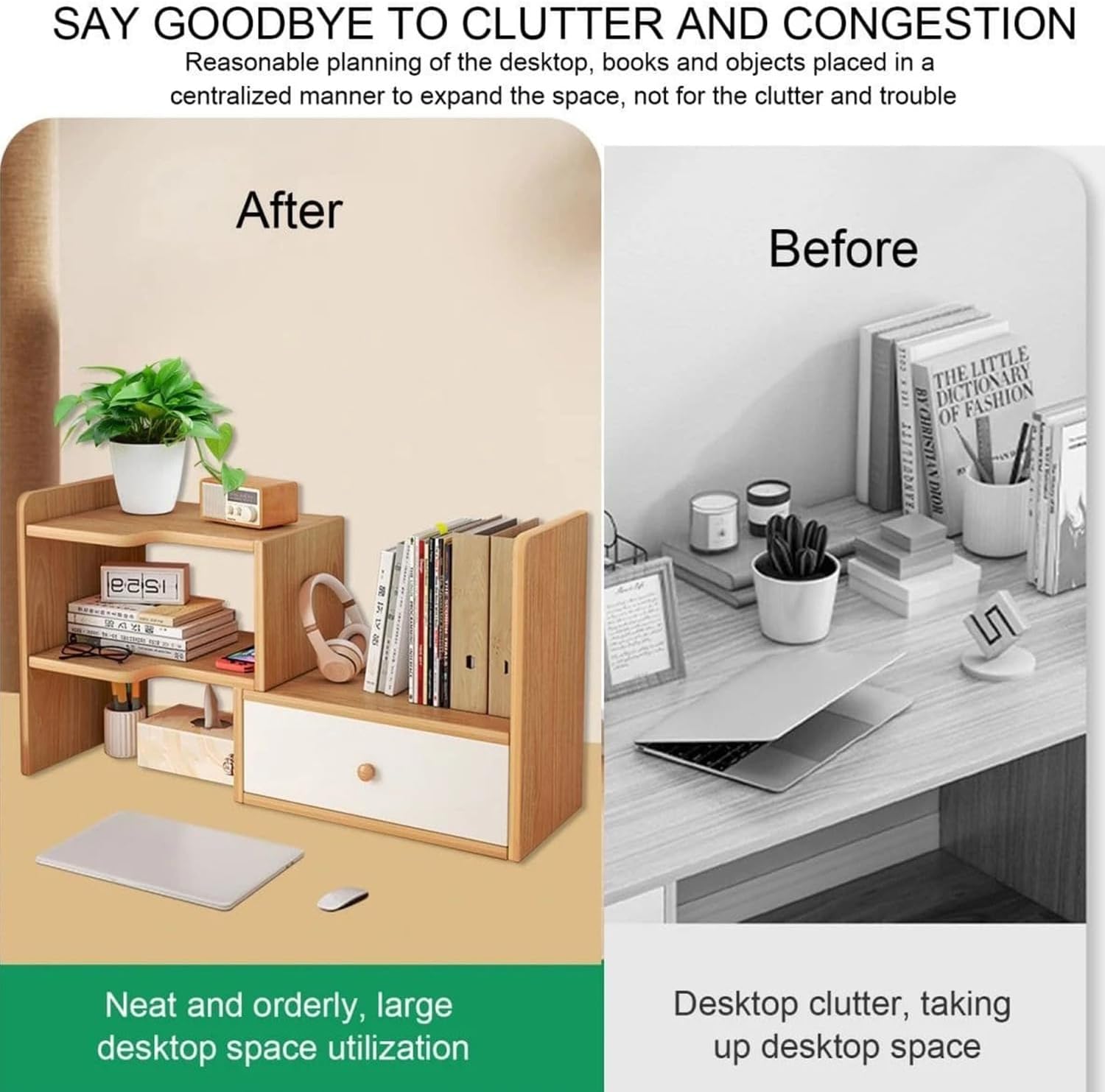【MATERIAL】- This desk top shelf is made from environmentally-friendly, non-toxic and harmless wood, so it has a high density material that provides a sturdy and sturdy support and is durable. The surface of the desk shelf is waterproof so you don't have to worry about water spotting. Your family can use it safely.