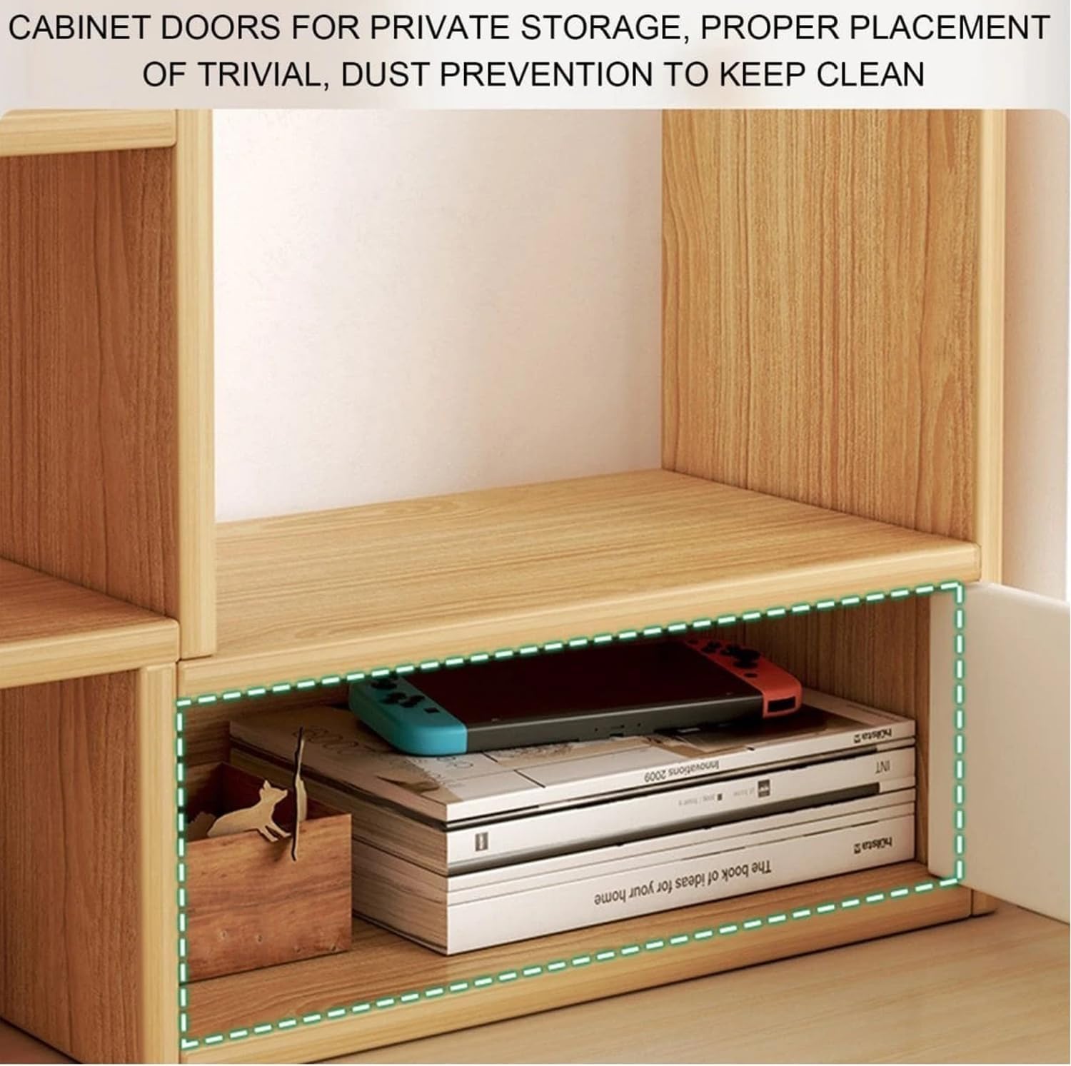 【SPACE-SAVING DESIGN】- The small size makes this bookshelf perfect for any desk, writing desk, table or countertop. The open area is easy to take and put in the open area, and short and tall books are put into the large and small compartments accordingly. And there have a small cabinet with door for better classification and storage of various objects, keep your desktop clean and neat.