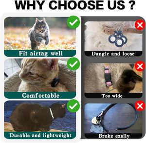【SAFE BREAKAWAY BUCKLE DESIGN】Our airtag cat collars feature sturdy breakaway buckle, which allows your cat to quickly break free when it is in danger outdoors or hanging on a tree. In addition, the AirTag cat collar has a reflective strip so you can easily find your cat at night. This makes it safer for cats to chase or play outside.