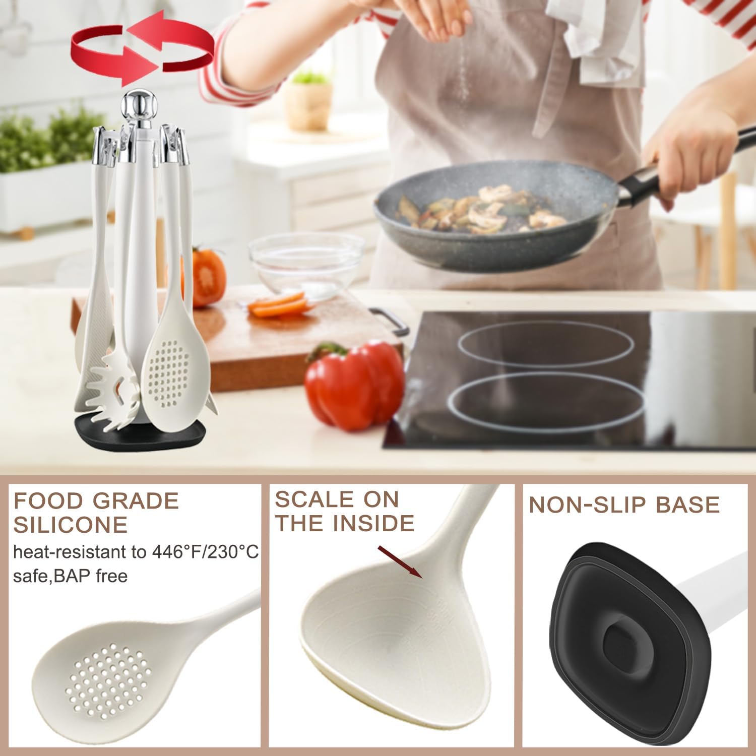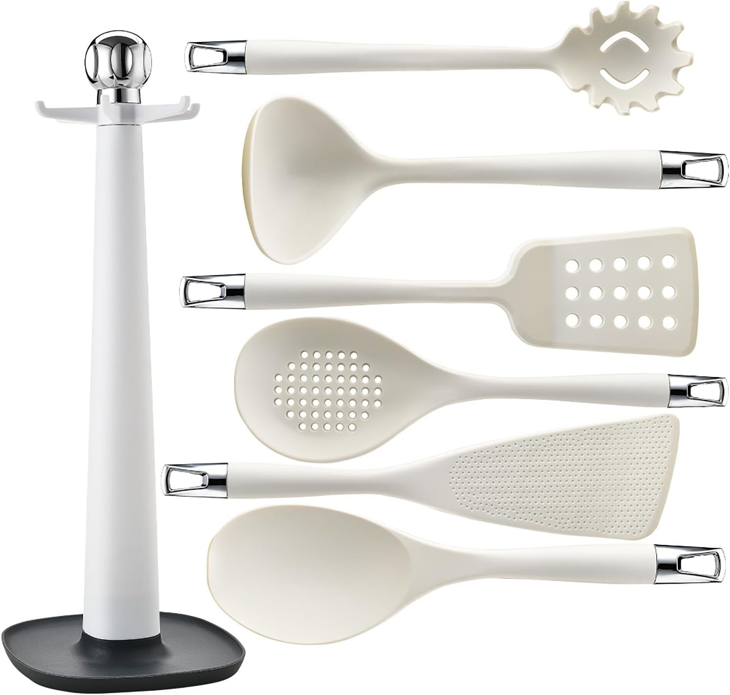 Comprehensive Kitchen Companion, Money-Saving Solution: Embracing a comprehensive array of 6 cooking essentials toolsand 1 utensil holder, this set caters to all your culinary needs. From a Deep Soup Ladle ;spoon to a Flexible Spatula, each piece is designed to protect your non-stick cookware from scratches, minimizing replacements and maximizing savings.