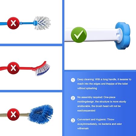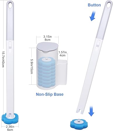 Easy To Use:Push The Button To Click The Disposable Toilet Brush Refills, And Clean The Toilet. After Cleaning, Pull The Button To Toss The Used Head Into The Trash. Besides, It’S Space-Saving When Hanging It On The Wall With The Sticker.