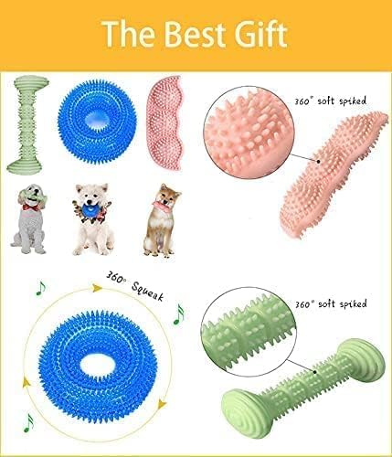 【Unique Designs】Squeaking donuts can attract dog's attention. Peas have high elasticity, and their bumpy thorns can clean dog's teeth 360 degrees. Dumbbells are dog's favorites, their perfect size fits dog's teeth perfectly.