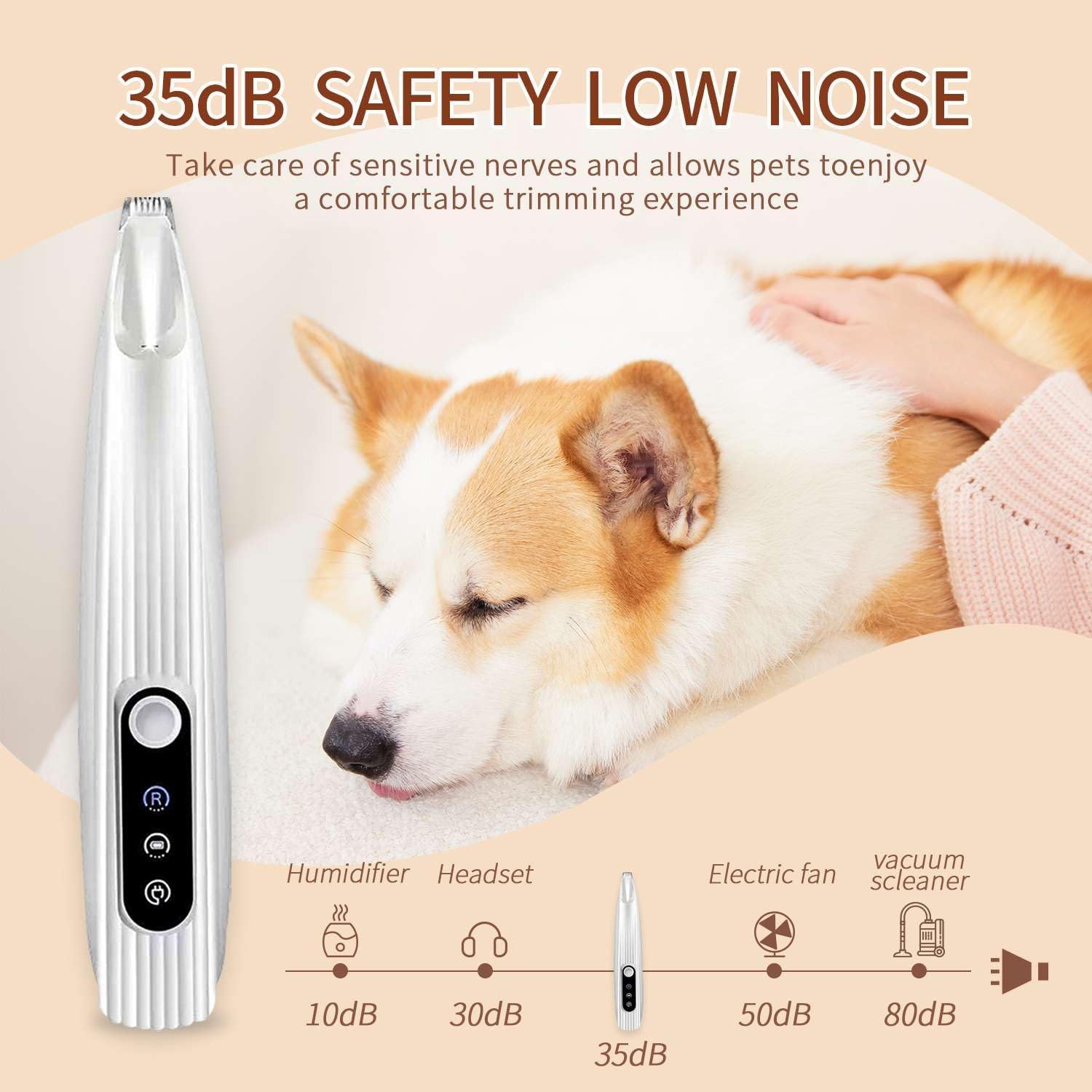 【35dB Low Noise】Equipped with a silent design, this paw trimmer for dog minimizes noise and reduces anxiety, creating a serene grooming environment. Dog clippers helps pets feel at ease and not afraid of cutting hair anymore. Making a more enjoyable grooming experience for both you and your pet