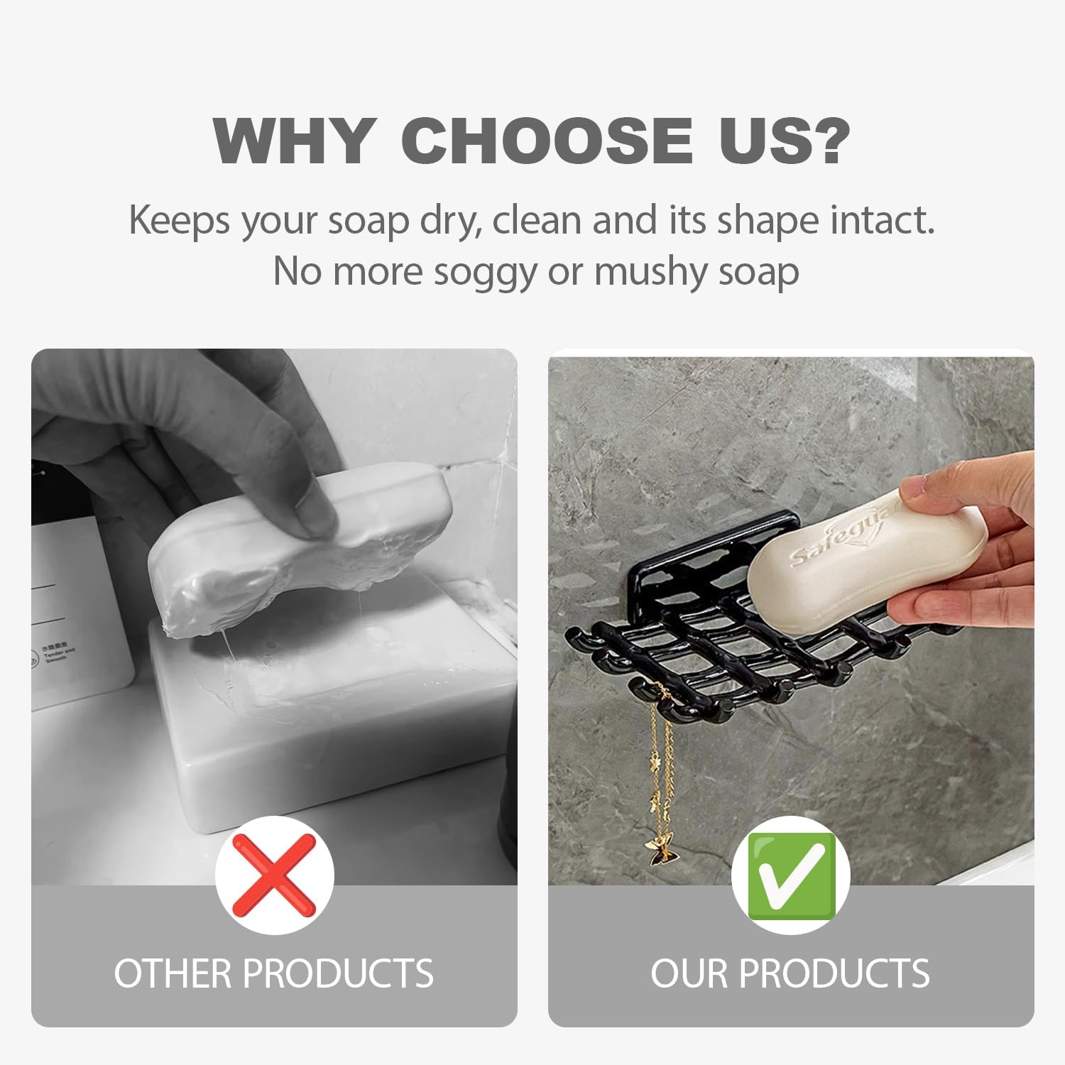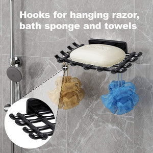 【CONVENIENT DESIGN】:Comparing with other soap holder, It has several hooks for hanging razor, bath sponge and towels