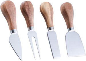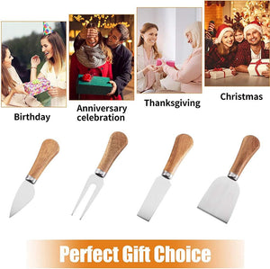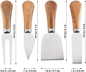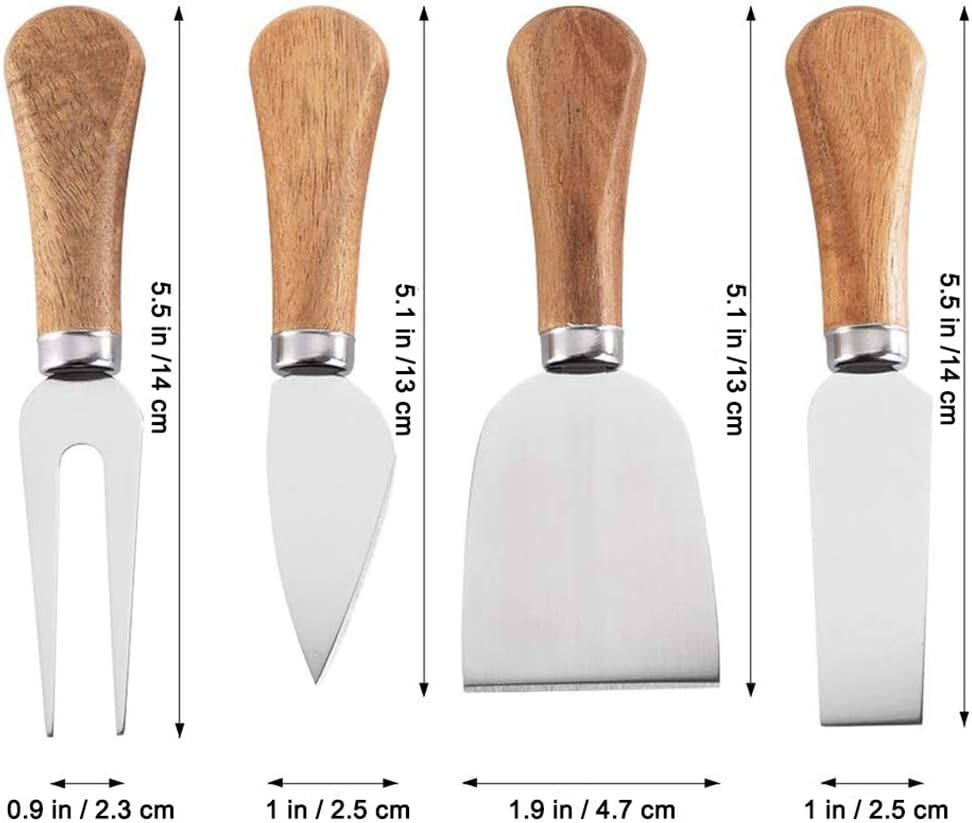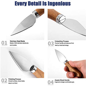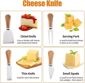 ✅【 4-Pieces Knives Set Includes】 - A Mini Spade Knife for Cutting hard Cheese, a Mini Fork to chuck cheese, a Narrow Plane Knife to slice semi-hard cheese and soft cheese, and a Spreading Knife for crumbly cheese.