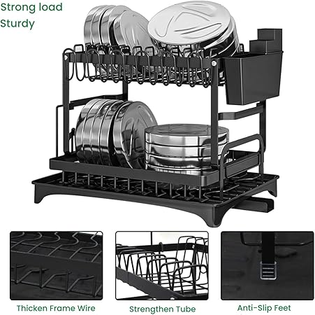 【STABLE & DURABLE】The sturdy construction provides a large load capacity to easily store all your kitchen utensil. The bottom dishes rack legs are equipped with 4 anti-slip rubber covers, increasing stability, preventing the tableware drying rack from sliding