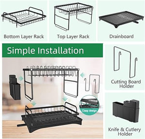 【EASY TO USE】- The kitchen drying rack is collapsible and snap-on design, easy to install, no tools are required. Cutlery holder & chopping board racks are detachable. It's convenient for clean and storage