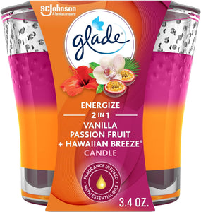 2-in-1 Candle Vanilla Passion Fruit and Hawaiian Breeze scented candle in a stylish glass jar
