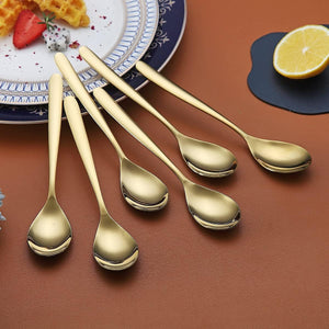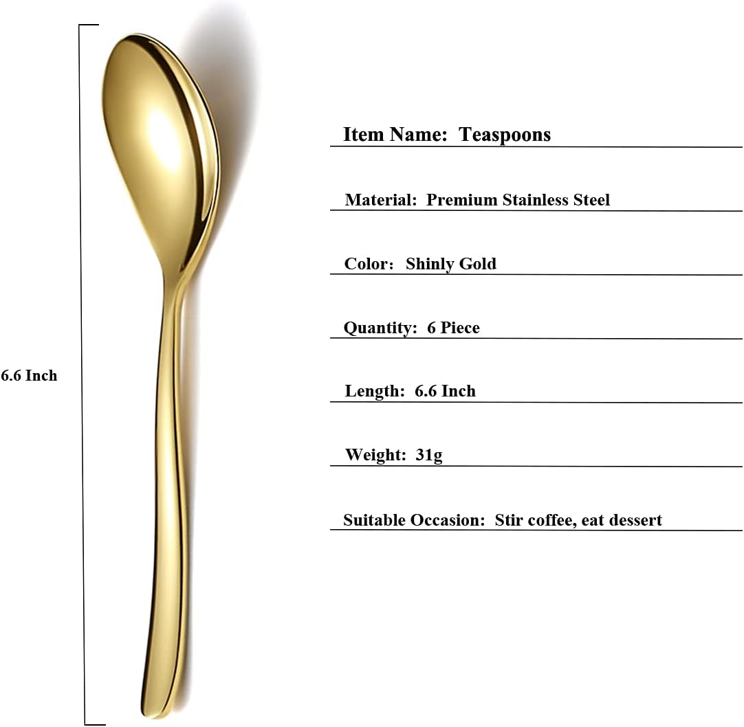 【Product Parameter】: Set of 6 Pieces gold 6.6" modern design sturdy high quality teaspoons.Perfect for special events, parties, birthday, wedding ect. Also perfect for daily use.