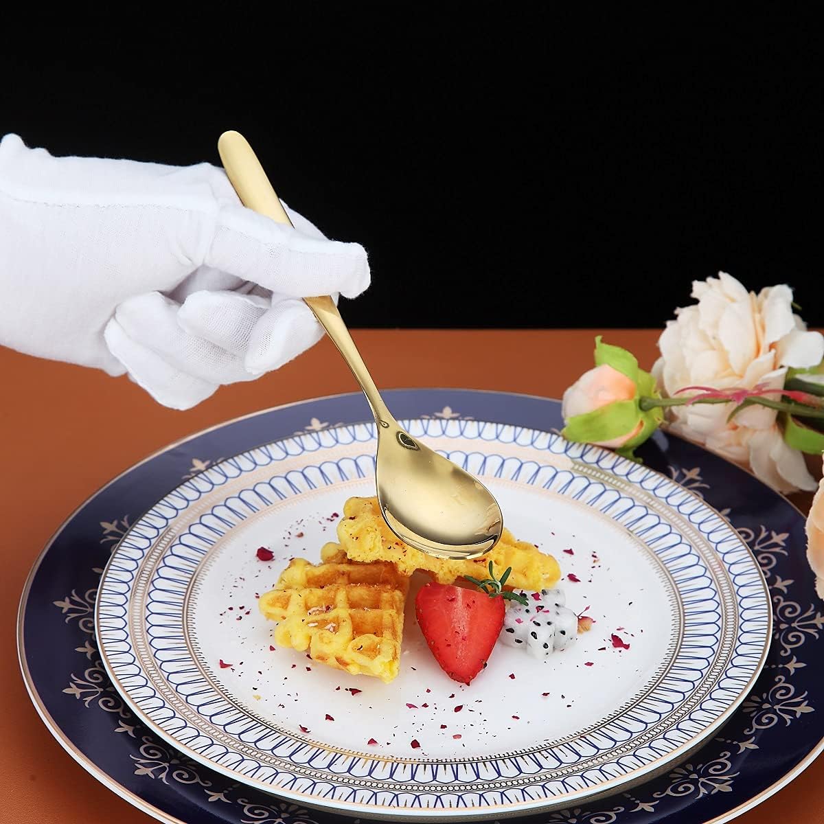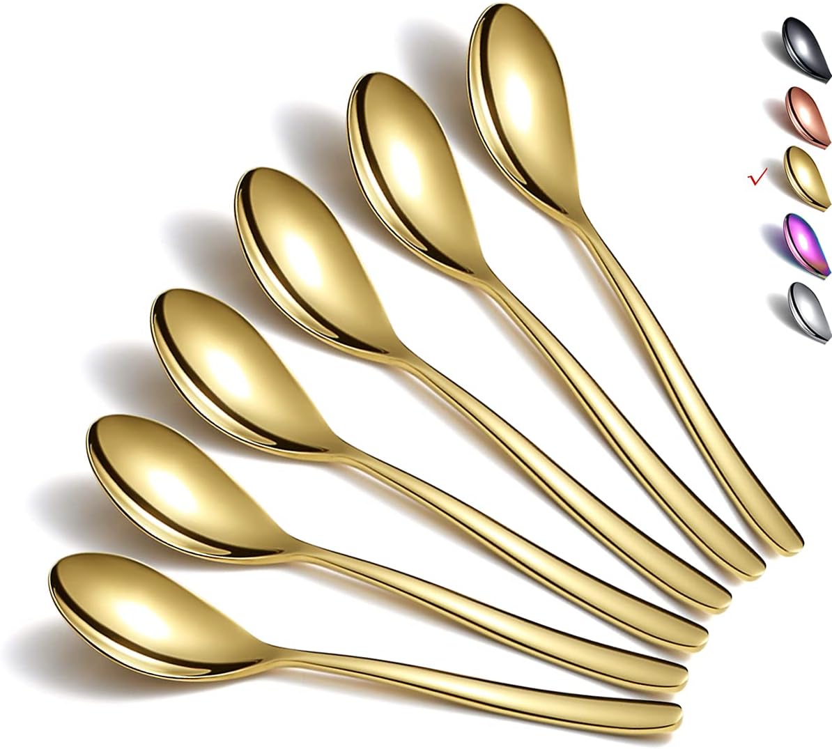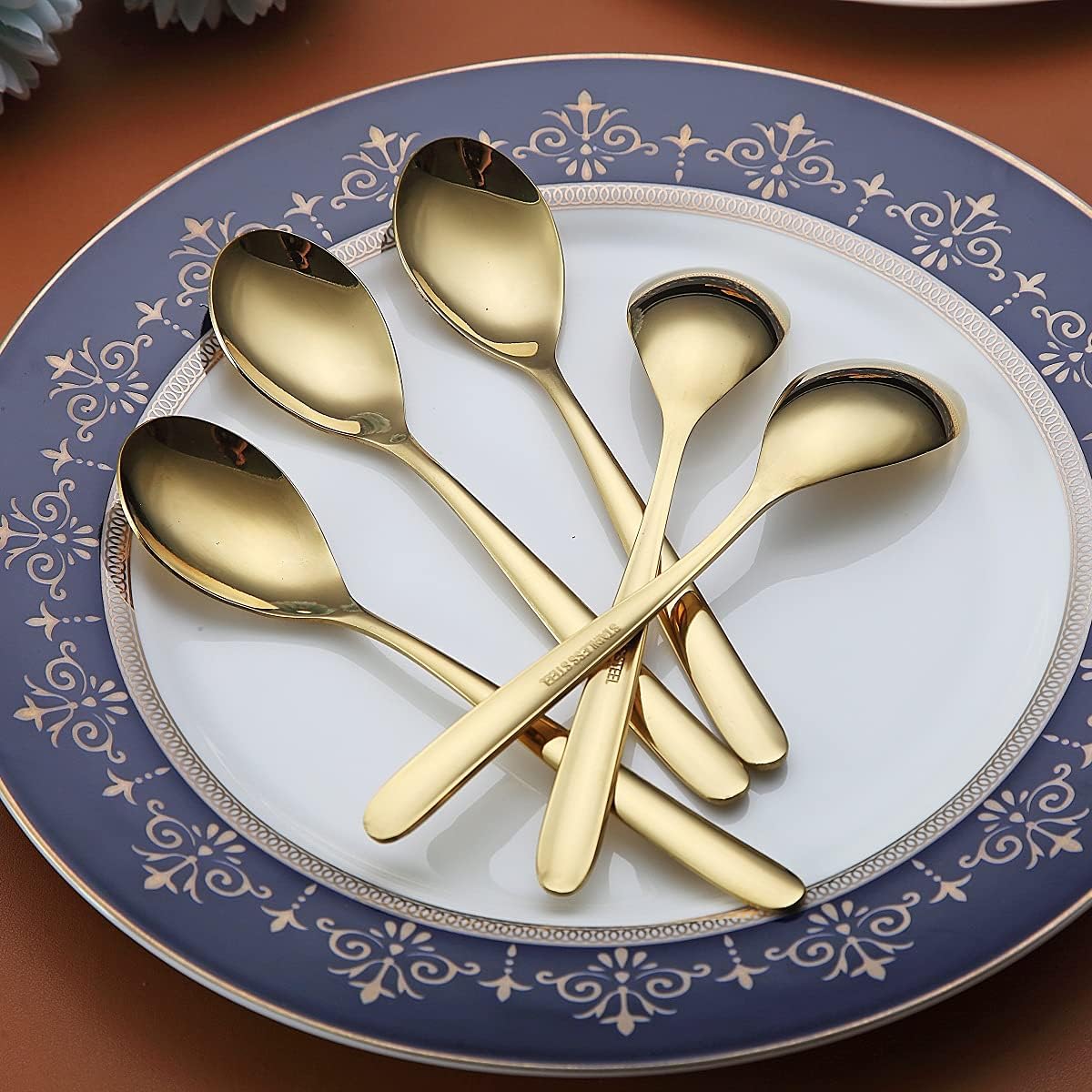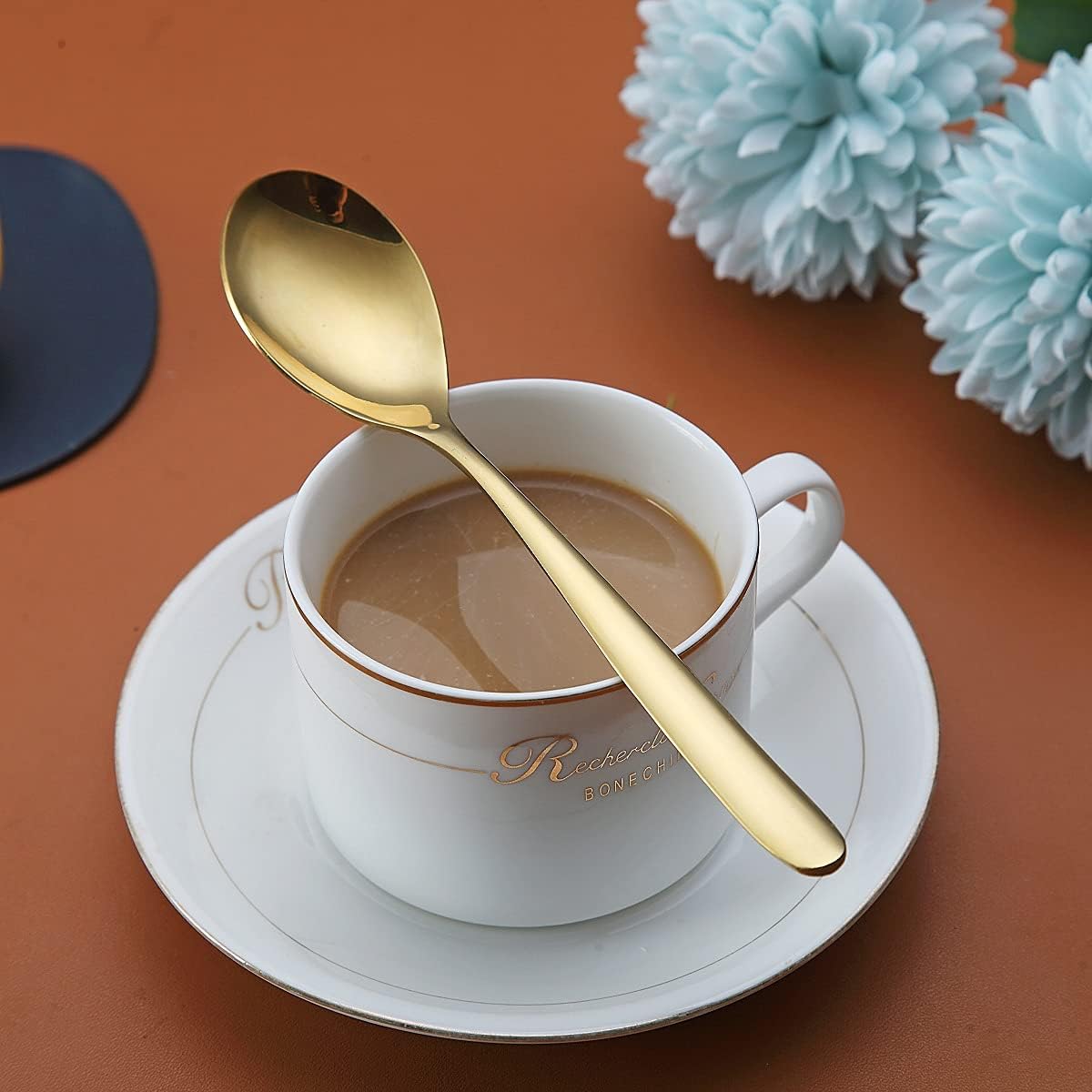 【Luxury and High Quality Finish】: These gold teaspoons are polish with mirror finish and plating with titanium gold. Looks luxury and beautiful. The gold titanium plating would protect the surface of silverware from scrath. Food grade material healthy for daily use.