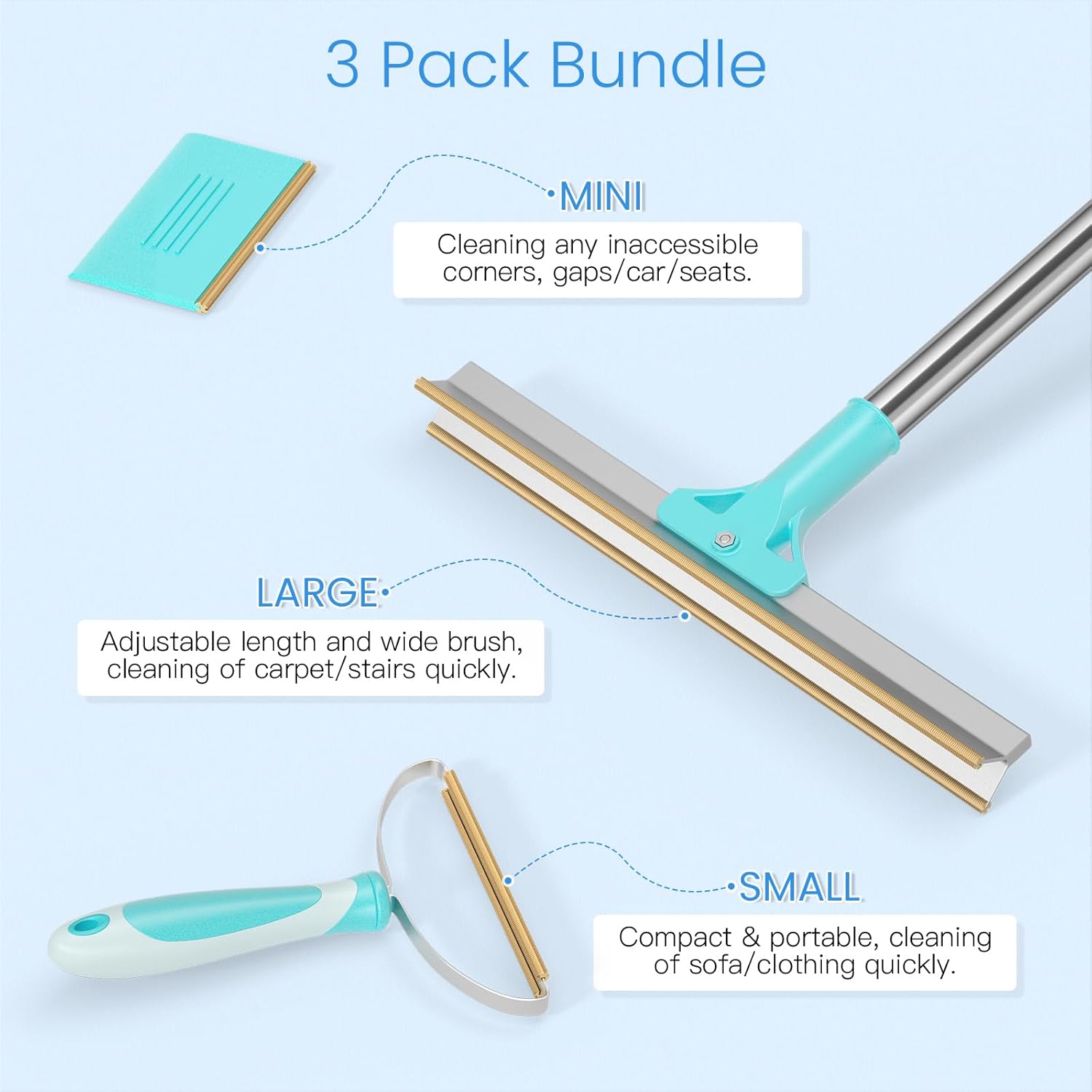 🎁3 Pack Pet Hair Remover: Large/ Small/ Mini,the pet hair remover set contains multiple of pet hair removal tools. Dog Hair Remover can be used to clean your pet's hair, as well as hard-to-reach nooks and crannies, more effectively than a regular broom or vacuum cleaner.