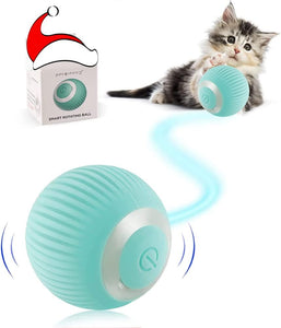 Smart Automatic Indoor Ball Puzzle Toy Dispels Boredom USB Rechargeable Pet Toy with Light, (Blue)