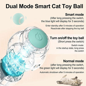 šŸ“ć€Intelligent Interactive Cat Toys怑With just a push of a button, the cat ball will start to rotate, move or shake 360 ​​degrees, attracting cats to chase and catch. The cat toy ball will constantly move around your house while flashing a slight white/green/blue light.