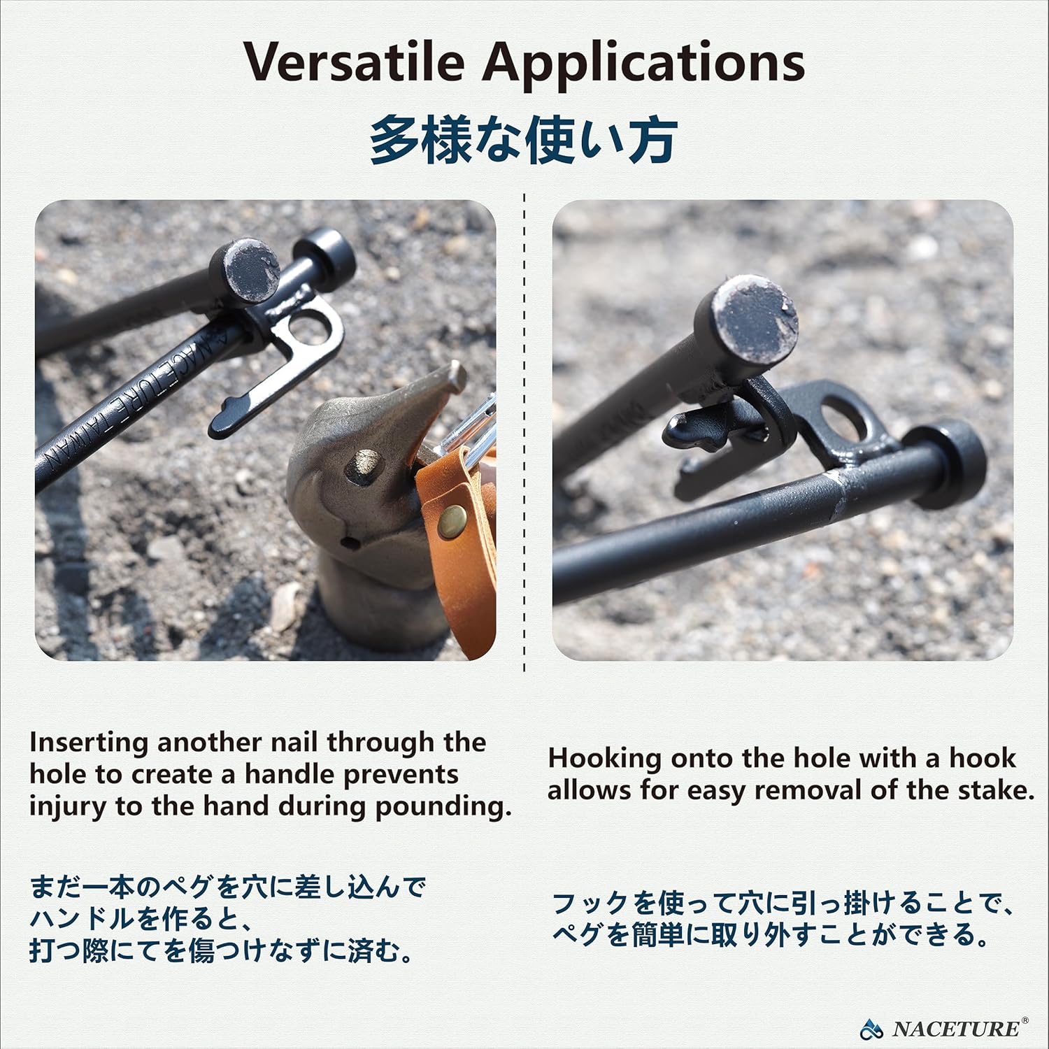 🔨Easy-to-Hammer Surface – Along with being stronger and more resilient these heavy duty tent stakes for high wind have an enlarged hammering surface to ensure cleaner, more efficient strikes when driving them in to help prevent injuries and improve ground security.
