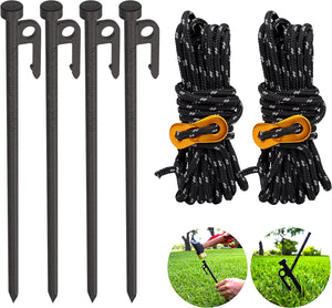 ⭐All-Purpose Ground Tent Stakes – A must-have camping tool set for avid campers and outdoor enthusiasts this yard stakes bundle comes with four 12-inch metal stakes for ground, 2 sets of 40’ camp ropes for home, hiking, tent camping accessories, and travel.