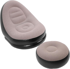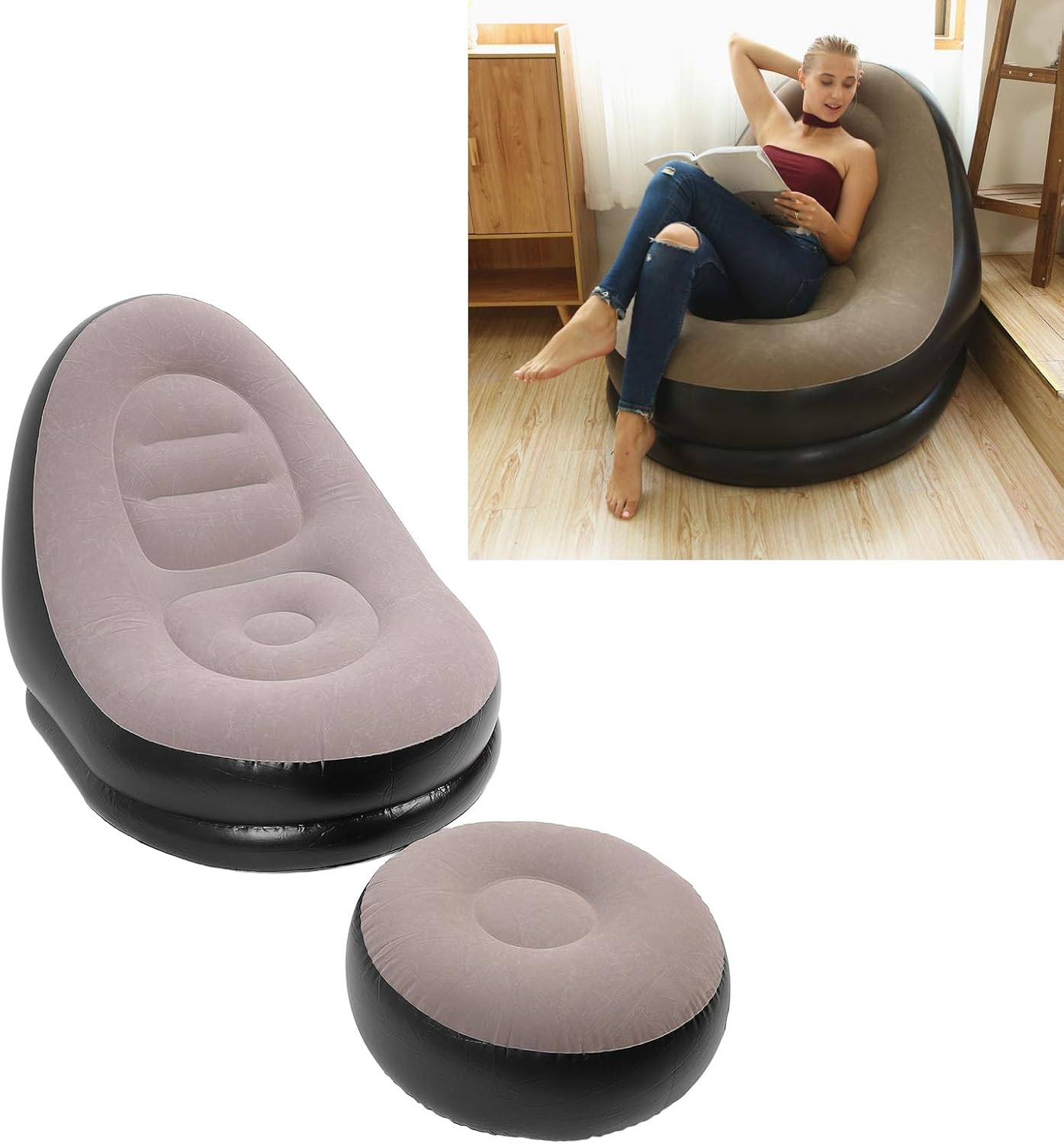 USES, STYLISH APPEARANCE: The inflatable chair with footstool is best suited for lounging, napping, sleeping, reading, sunbathing, family backyard gatherings and more. Simple and fashionable appearance design, suitable for all kinds of indoor space.