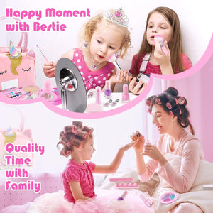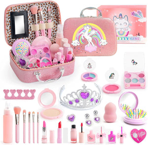 IDEAL GIFT FOR GIRLS: Every little girl wants to have her own washable real makeup kit and love to dress like her mom. This pretend makeup toy fulfills the dream of every little princess! Little girls could play with cute makeup kit with mom, friends. Buy the kids makeup kit back as a gift for your sweet princess and teach her how to make up! The most special birthday gifts, Halloween gifts, Christmas gifts, children's day presents for little girls age 3 4 5 6 7 8 9 year old.
