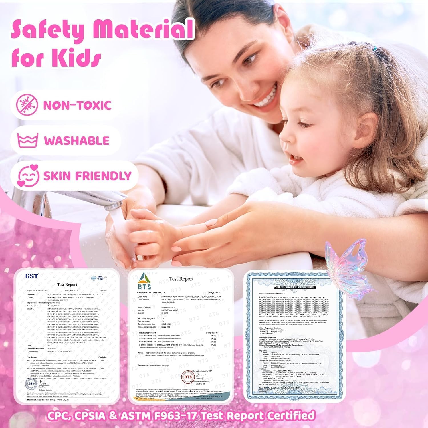 EASY STORAGE&PORTABLE KIDS MAKEUP CASE: Cute little girls makeup bag, the large capacity allows your little girl to organize and collect scattered cosmetic toys. Convenient to carry, so that little girl could play with their beloved washable makeup toys anywhere like traveling, dressing party.