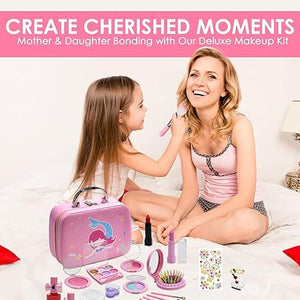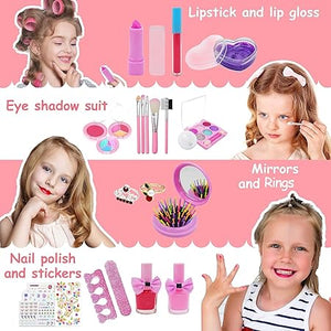 ENJOY KIDS MAKE UP PRETEND PLAY: A rich safe makeup for kids satisfies little girls curiosity and needs for her first makeup. There are a number of colors for eyes, cheeks and lips. Great first makeup set for little girls! Every little girl wants to have her own makeup kit one day and love to dress like her mom. This real washable makeup set fulfills the dream of every little princess! play makeup set for toddlers let your little princess enjoy girls dress up role play & kids pretend play!