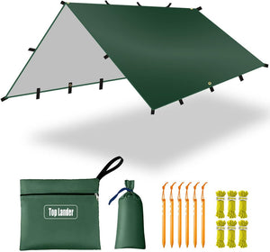 Premium Quality: This tent tarp is made of Oxford fabric, so it is rip-stop and waterproof. It is coated with anti UV materials so that it will block more than 90% ultraviolet light.