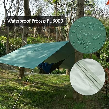 Multi-use: It can be used as a hammock rain fly and waterproof shelter over tent. It is also useful when you go camping, hunting, fishing or go to a picnic with family