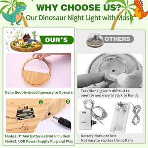 【Extensive DIY Craft Kit】The dinosaur music night light is made of high-quality ABS material and is durable. The lampshade has transparent snaps that won't break. The dinosaur lighting is handmade and has two power supply modes: 3 AAA batteries (not included) or USB power. It is convenient and easy to use, and is suitable for decorating children's bedrooms.