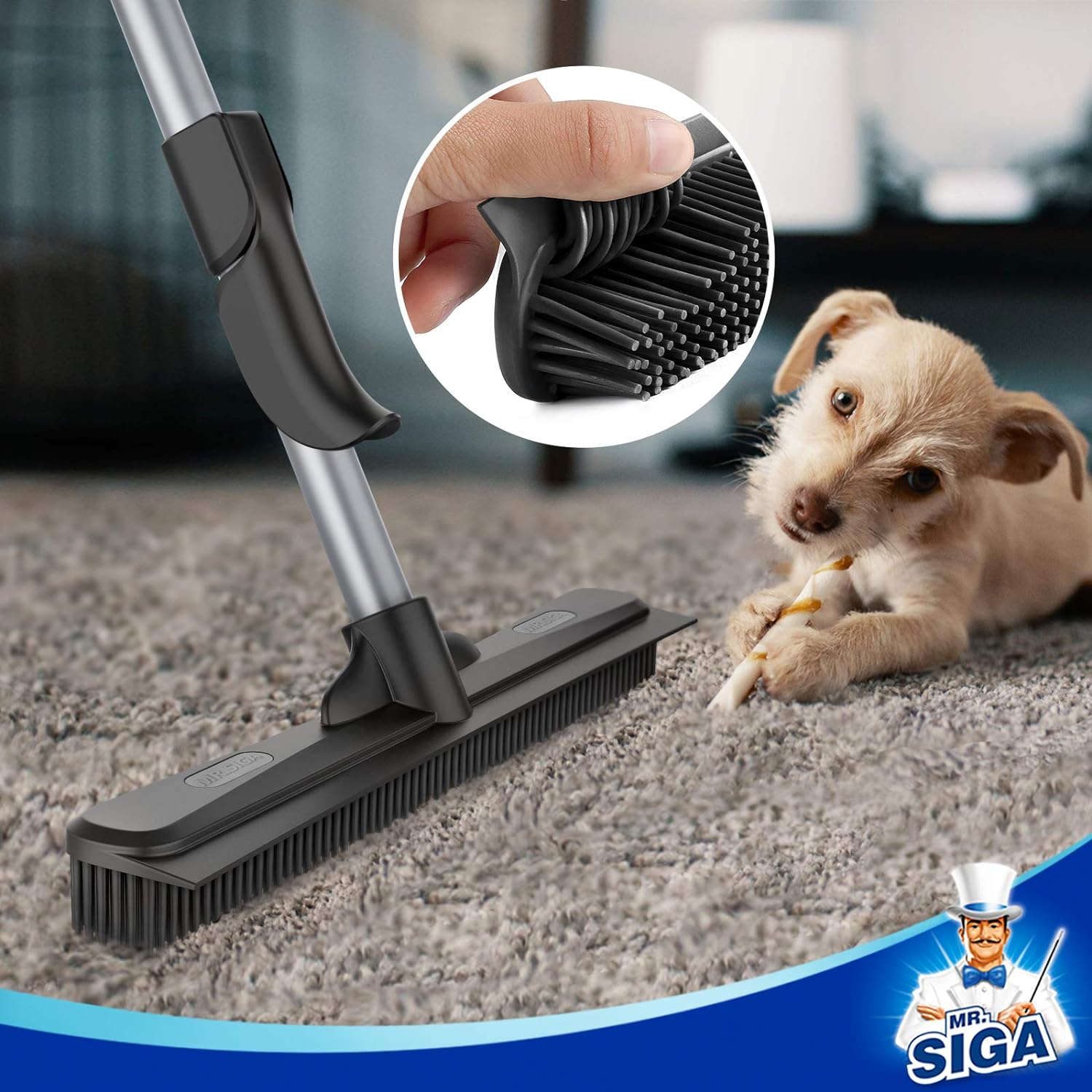 EFFICIENT PET HAIR REMOVAL: The Pet Hair Removal Rubber Broom features a specially designed rubber brush head that effectively captures and removes pet hair from carpets and hard floors, ensuring a cleaner home environment for pet owners.