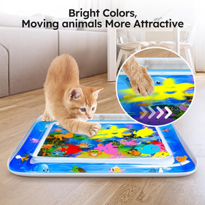 More Flashing Animals: Add more fish-like toys floating on the water, flapping the water can be very attractive to the cat's flapping and catching, so that the cat in the sensory water play mat excited to chase and catch fish for exercise.