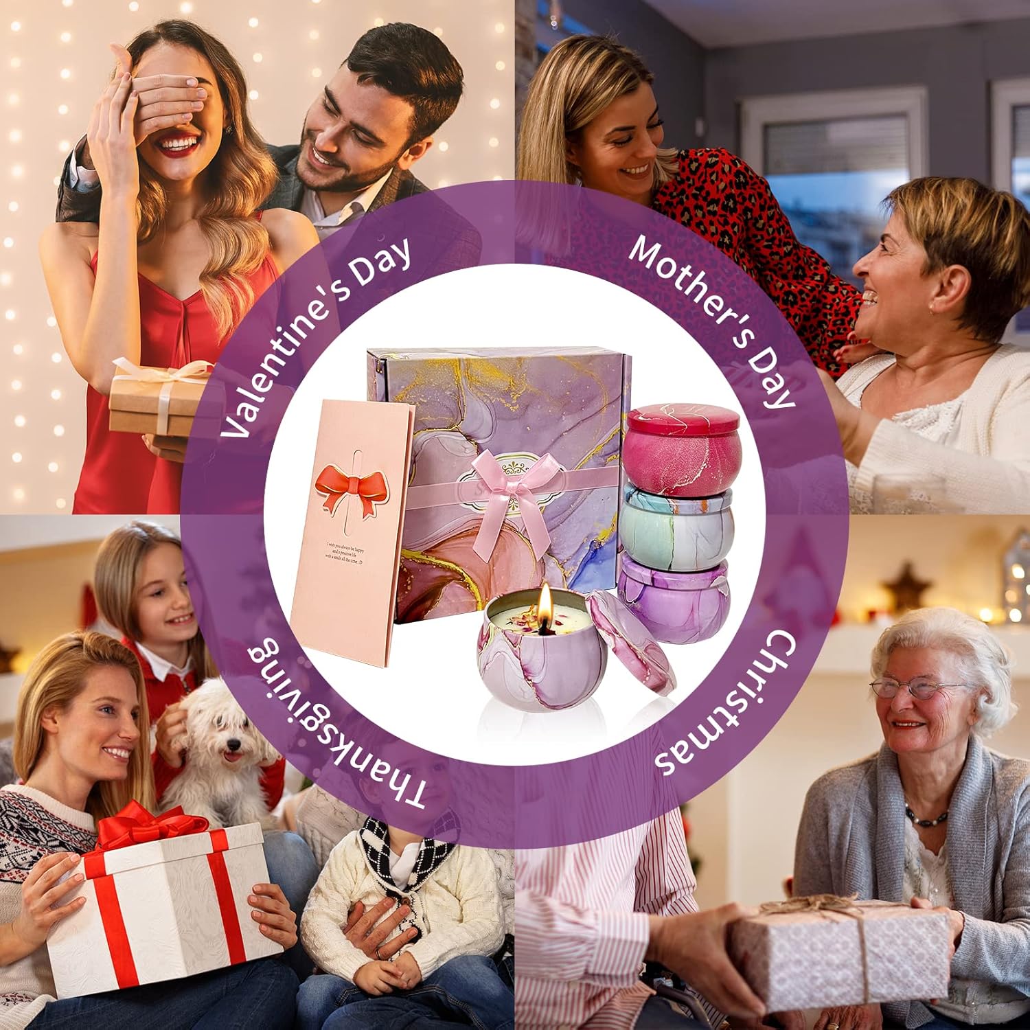 4 Scented Candles: Scented candles gift set with 4 packs of different scents which includes Lavender, Gardenia, Rose, and French Vanilla, candles for home scented give off a peaceful and pleasant scent, candles gifts for women as Mother's Day, Christmas, and birthday!
