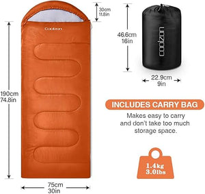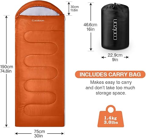 Advanced materials – this sleeping bag is durable, high-quality; the fluffy cotton fabric is very soft; highest quality 100% polyester fibre is used as a surface material, and hollow cotton is used as a filling material to ensure low weight, durability and easy carrying. It saves you from a lot of effort; after a hard day of hiking, it brings you a relaxing, warm sleep