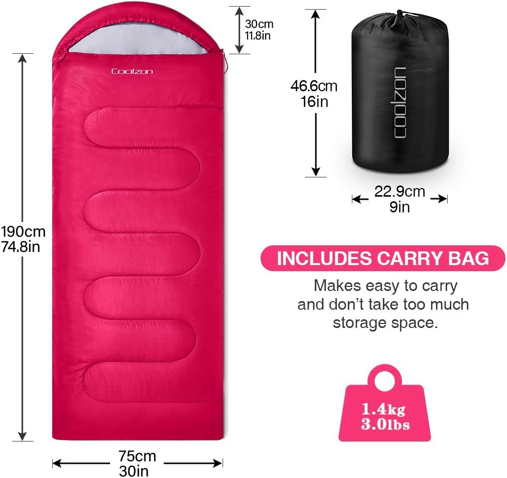 Advanced materials – this sleeping bag is durable, high-quality; the fluffy cotton fabric is very soft; highest quality 100% polyester fibre is used as a surface material, and hollow cotton is used as a filling material to ensure low weight, durability and easy carrying. It saves you from a lot of effort; after a hard day of hiking, it brings you a relaxing, warm sleep